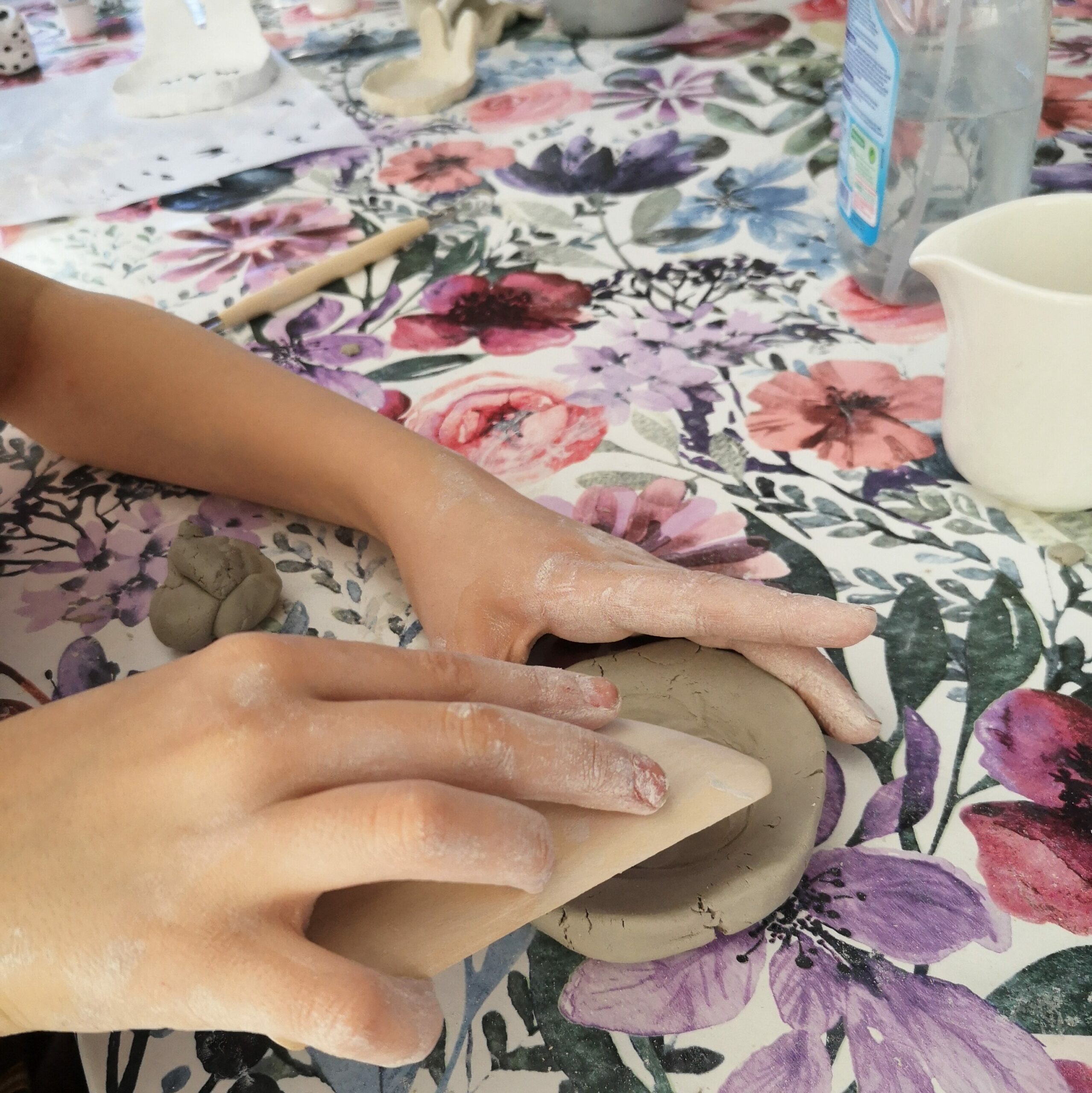 - Une partie pratique avec création et manipulation de différentes techniques artistiques ( sculpture, peinture, collages, linogravure, cyanotype, etc…) sur le même thème que la première partie. Chaque enfant repart avec sa ou ses créations.