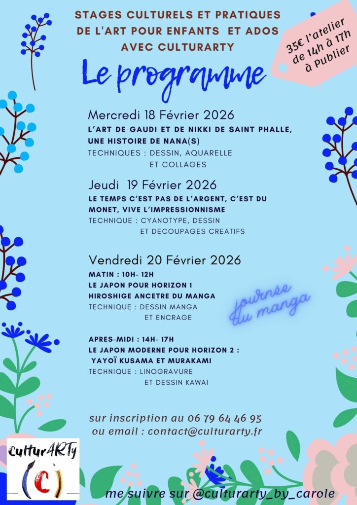 Les stages d’histoire de l’art Culturarty ont lieu pendant les vacances. A chaque jour, un thème, un courant artistique ou une destination.