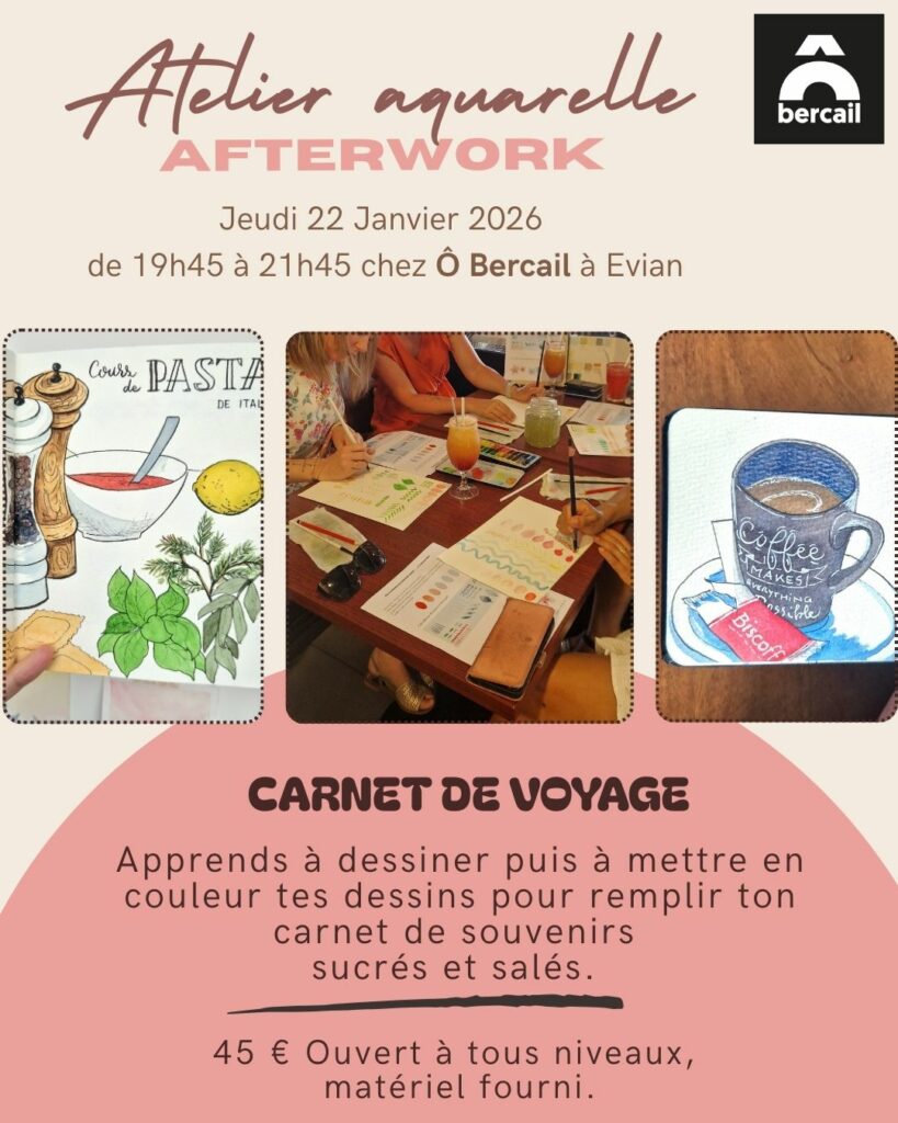 2 heures d’atelier pour apprendre à dessiner et colorer son carnet de voyage. Venez explorer les bases de l’aquarelle pour créer et vous détendre dans une ambiance cosy.